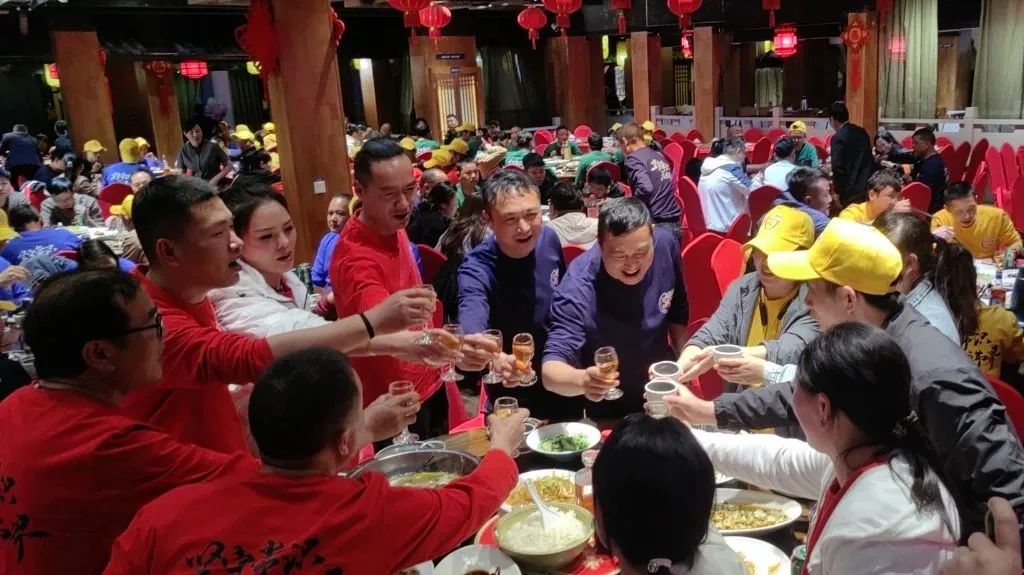 既然出来玩了,那么美食大餐必须安排!两天一夜的行程期间大餐不断,餐厅内人头攒动,气氛热烈。第一天午餐各位同事围坐在大圆桌旁,有的拍照录制,有的讨论行程安排。服务员及时为每位提供开酒水,茶歇时更是细致入微。晚餐则在酒店的宴会厅举行,装饰高雅,音乐温馨,大家享受湖州德清的特色菜。